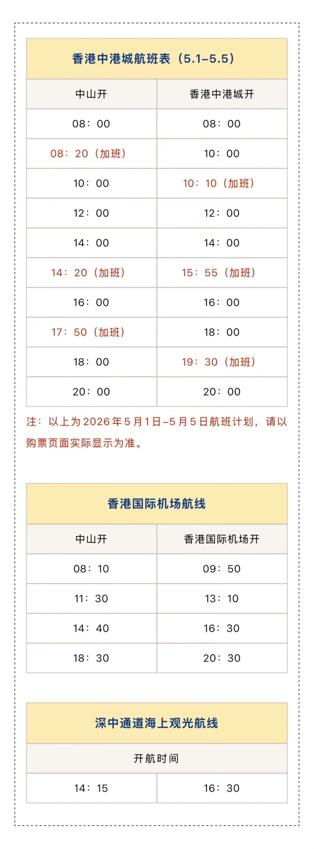 中山客运口岸“五一”假期航班计划已出炉,