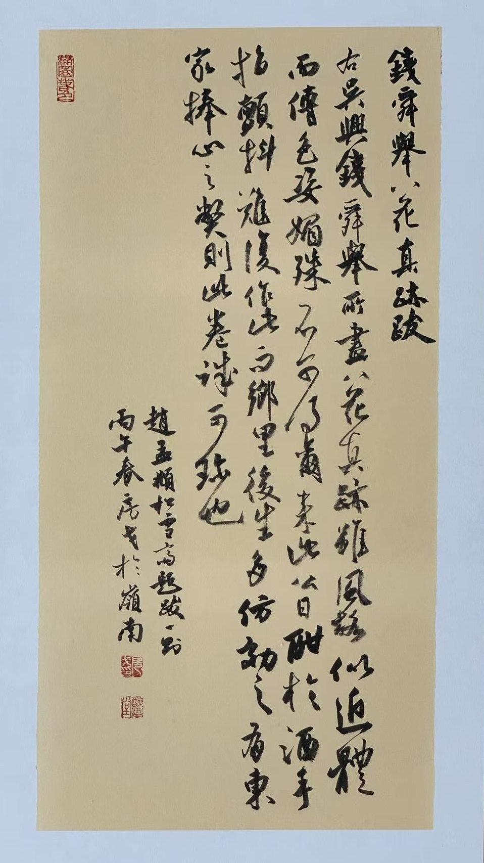 本次展览由昌岗岭南文化交流中心主办,黄丹、周攀策划,汇集了邝以明及其弟子、友朋书画篆刻作品数十件,包括房戈、邓俊峰、梁少芬、苏德华、侯成辉、方知均、龚领、杨娜娜、邵常铭、江雨婷等十余位作者。